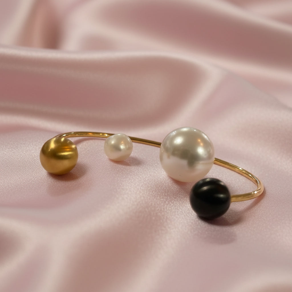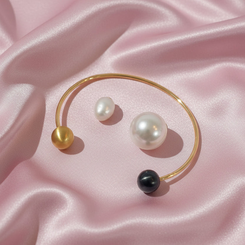 Ae Studio Bracelet Gold Colour w /Sphere Pearl Gold c. Brushed, Black, Mega Shell Pearl & Baroque Pearl