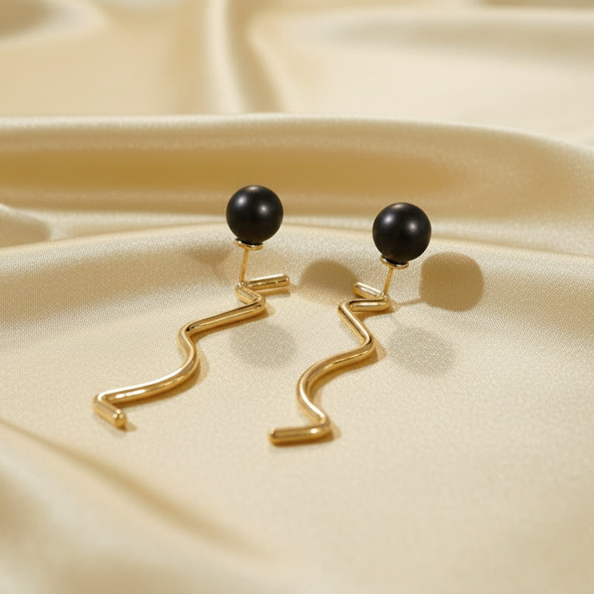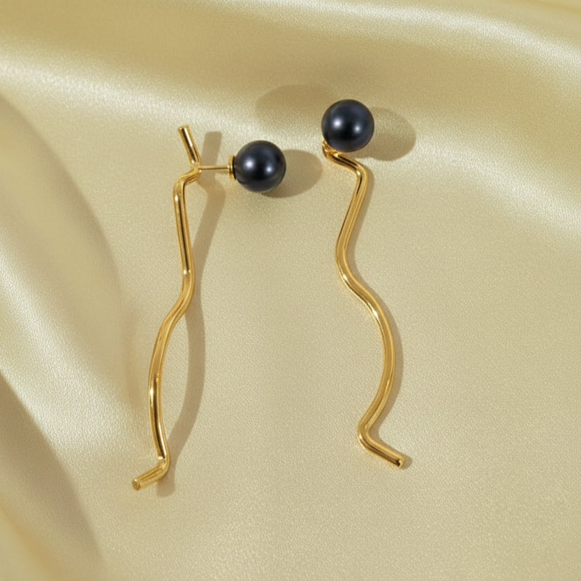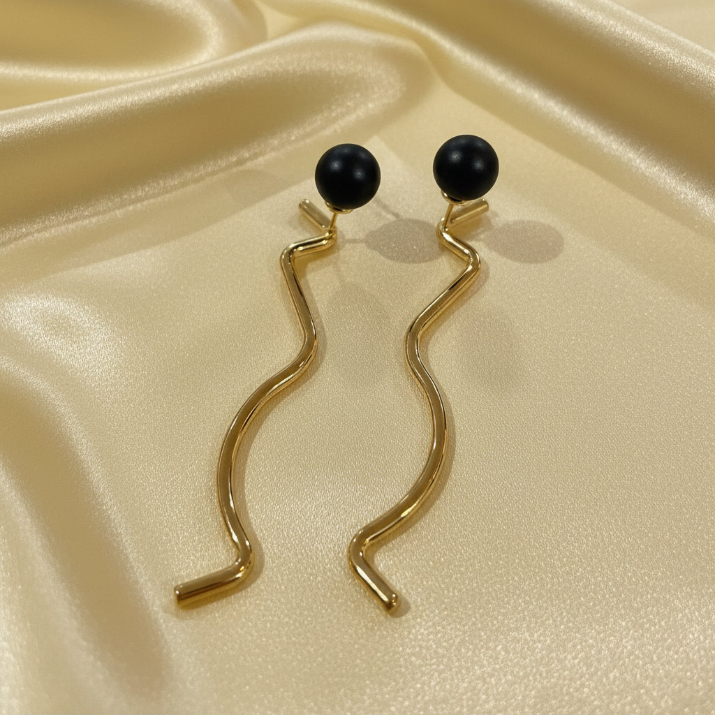 Ae Studio Rounded Earstick S02 Brushed Gold Colour w/ Black Pearl