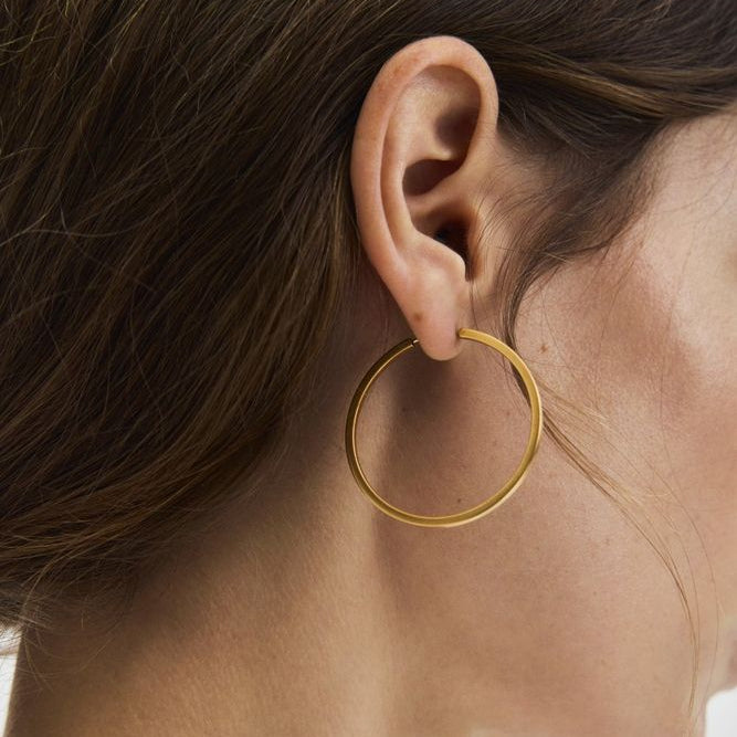 Circle Line Hoops er en simpel hoop med en smuk børstet overflade, der giver et elegant og tidløst udtryk. Hoopen er 2 mm bred, hvormed den får et mere karakterfast udtryk, der bryder med det almindelige.