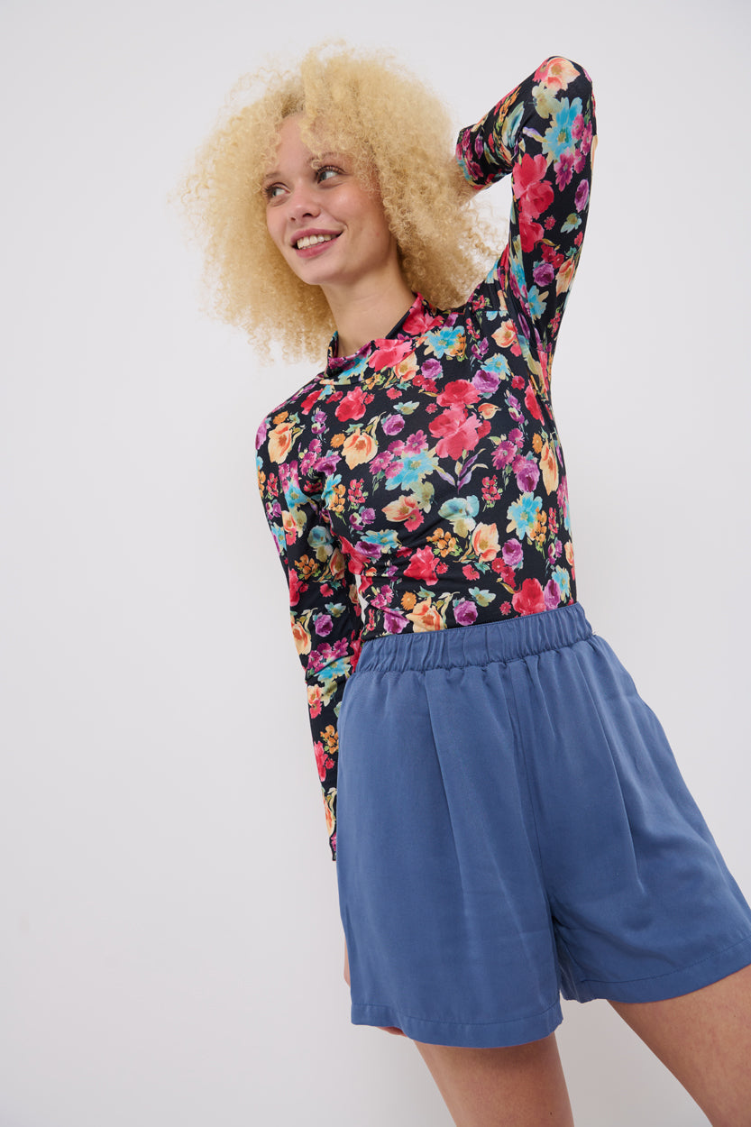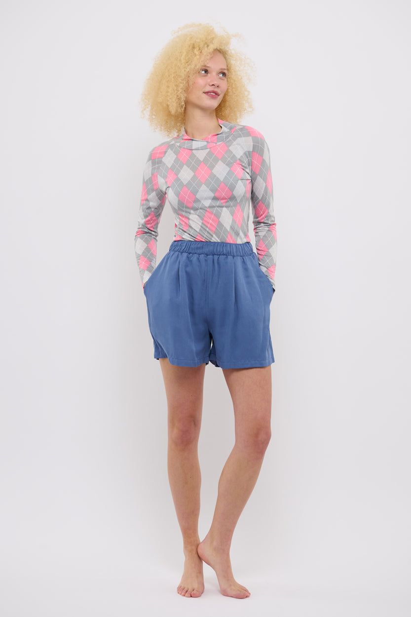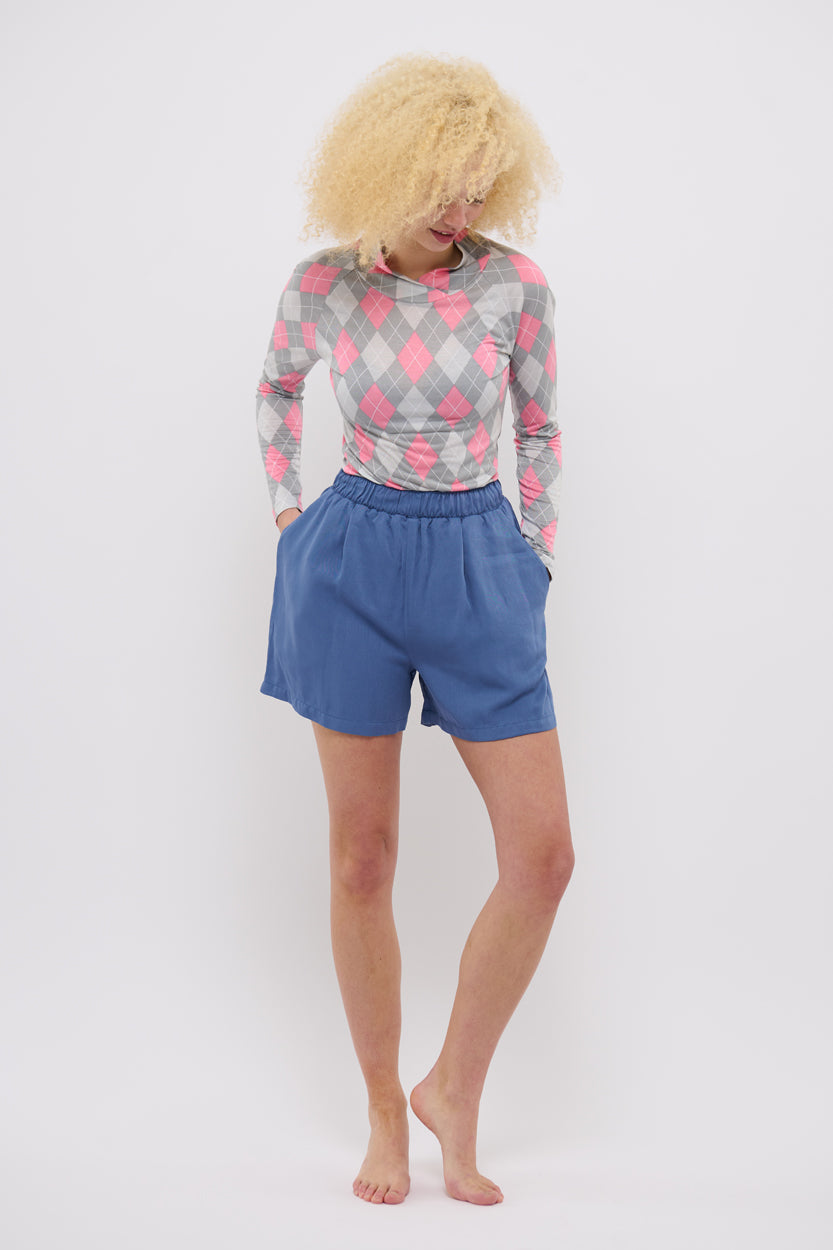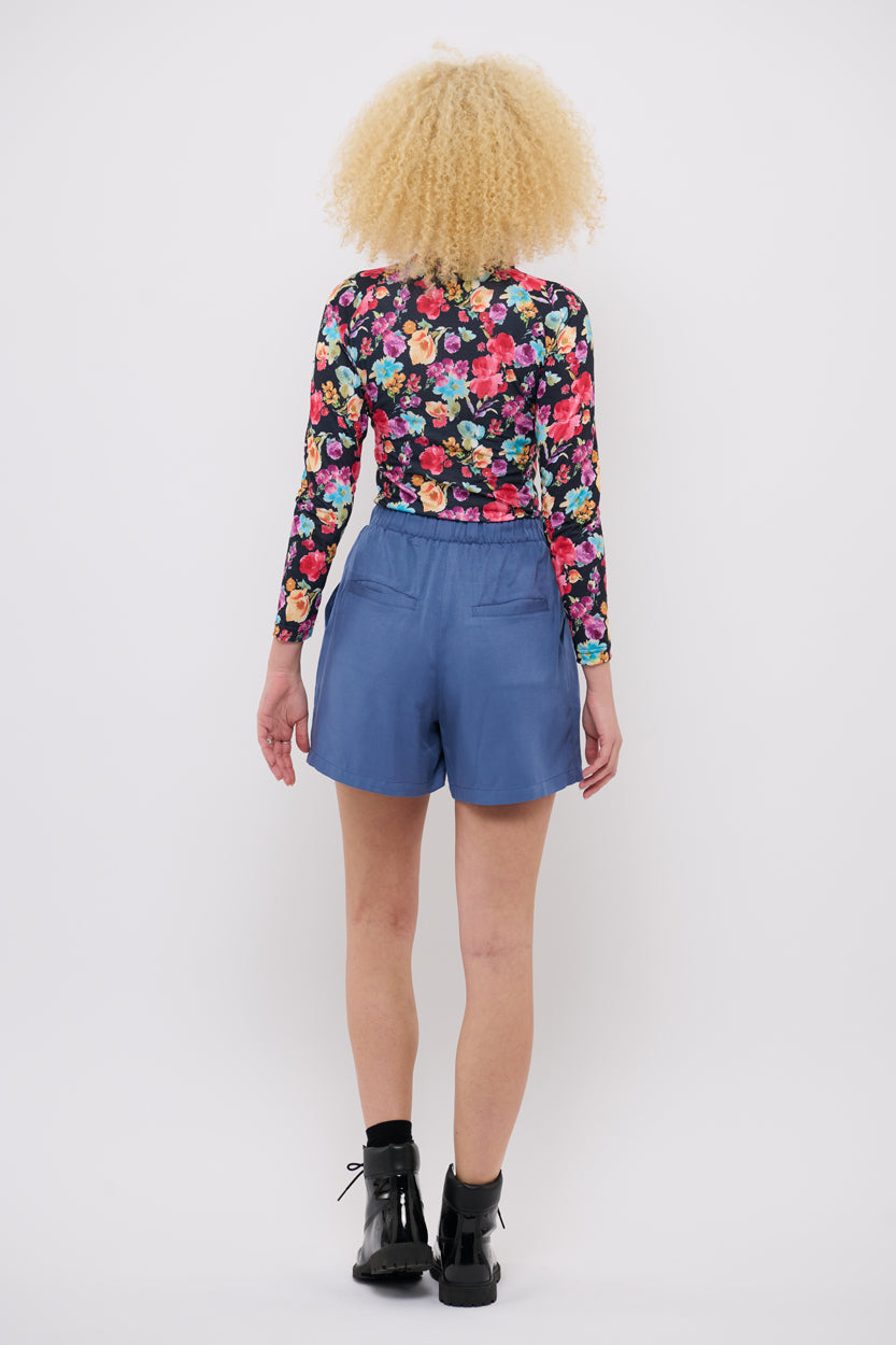 Irma-shortsene er højtaljede med elastik i taljen, korte og brede ben samt både sidelommer og baglommer – et afslappet og feminint snit, perfekt til varme dage.
