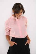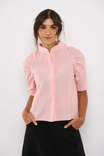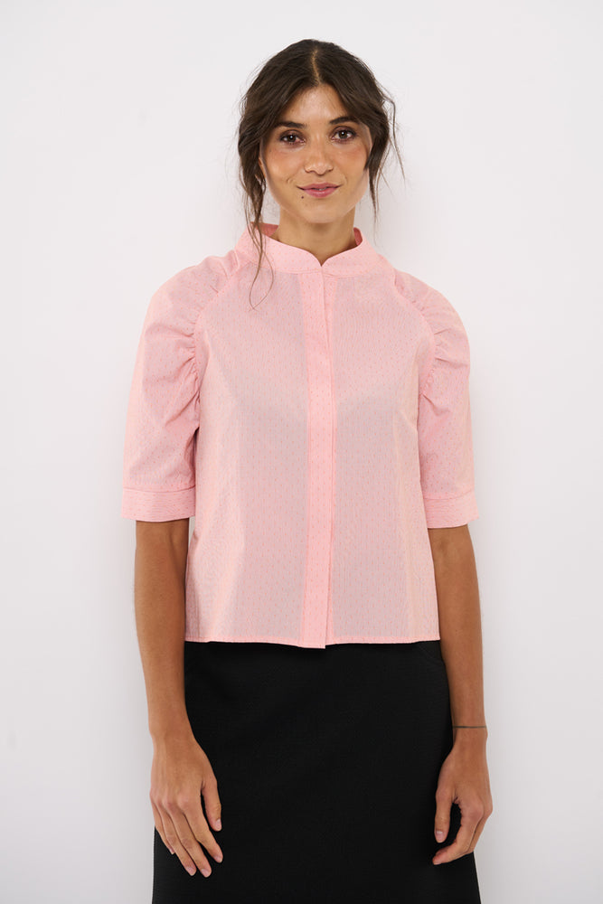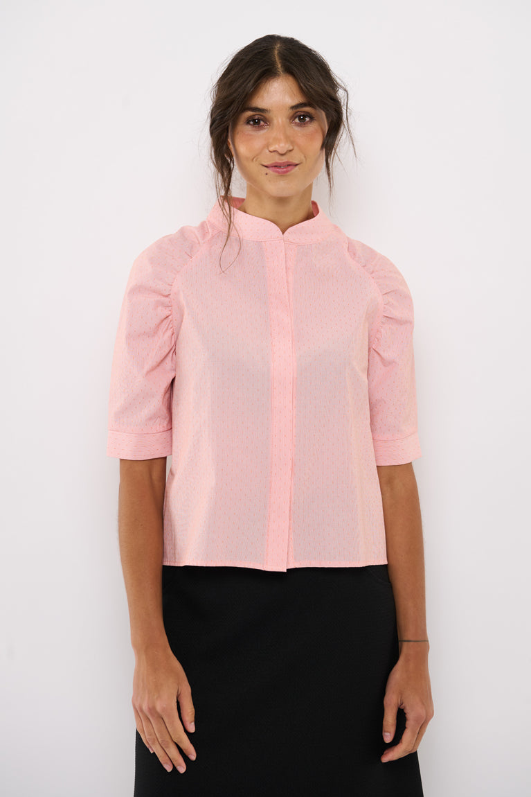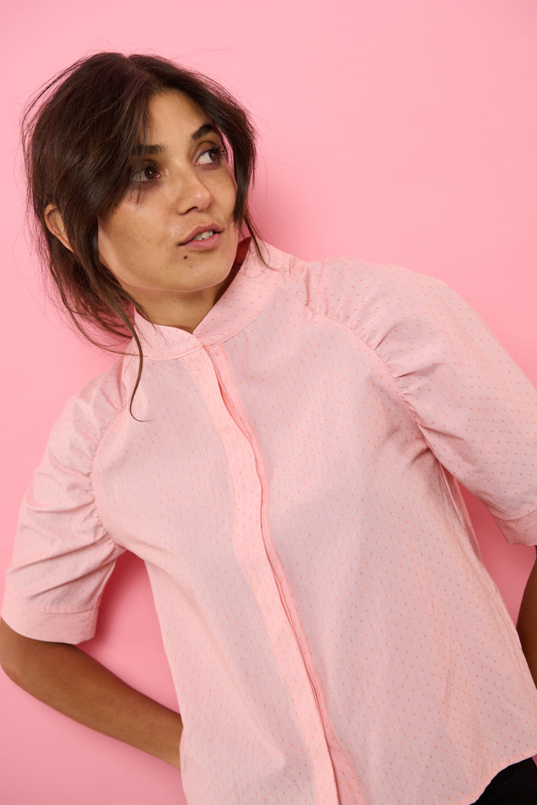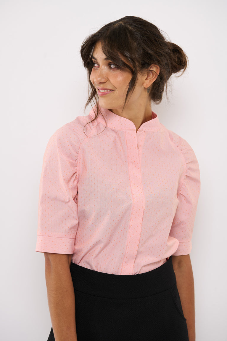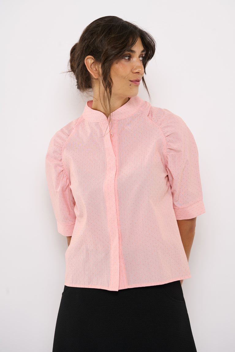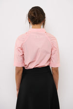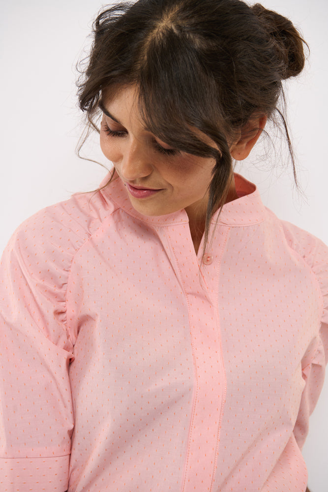 - Korte raglans ærmer med læg i gennemskæringen på forstykket